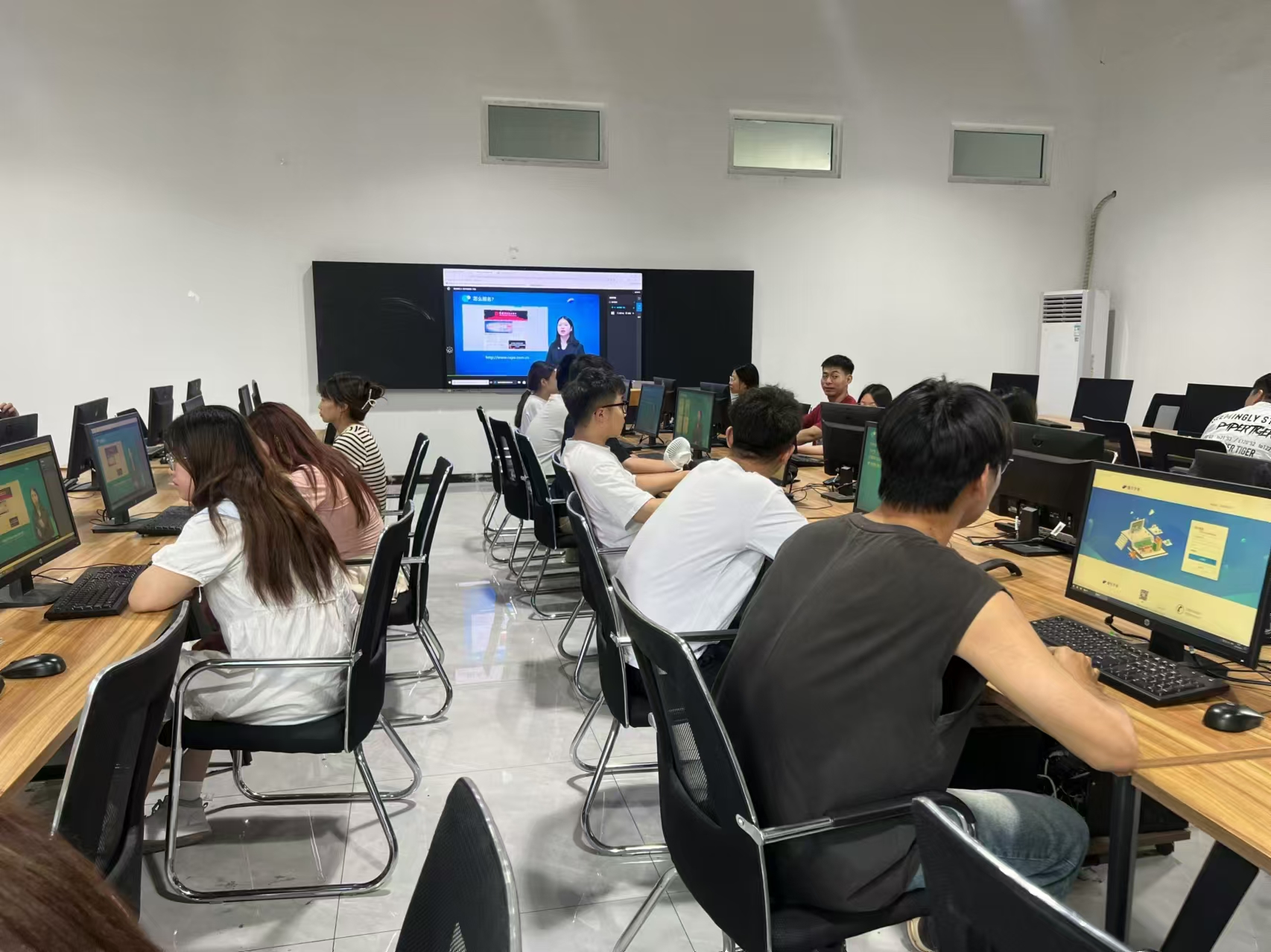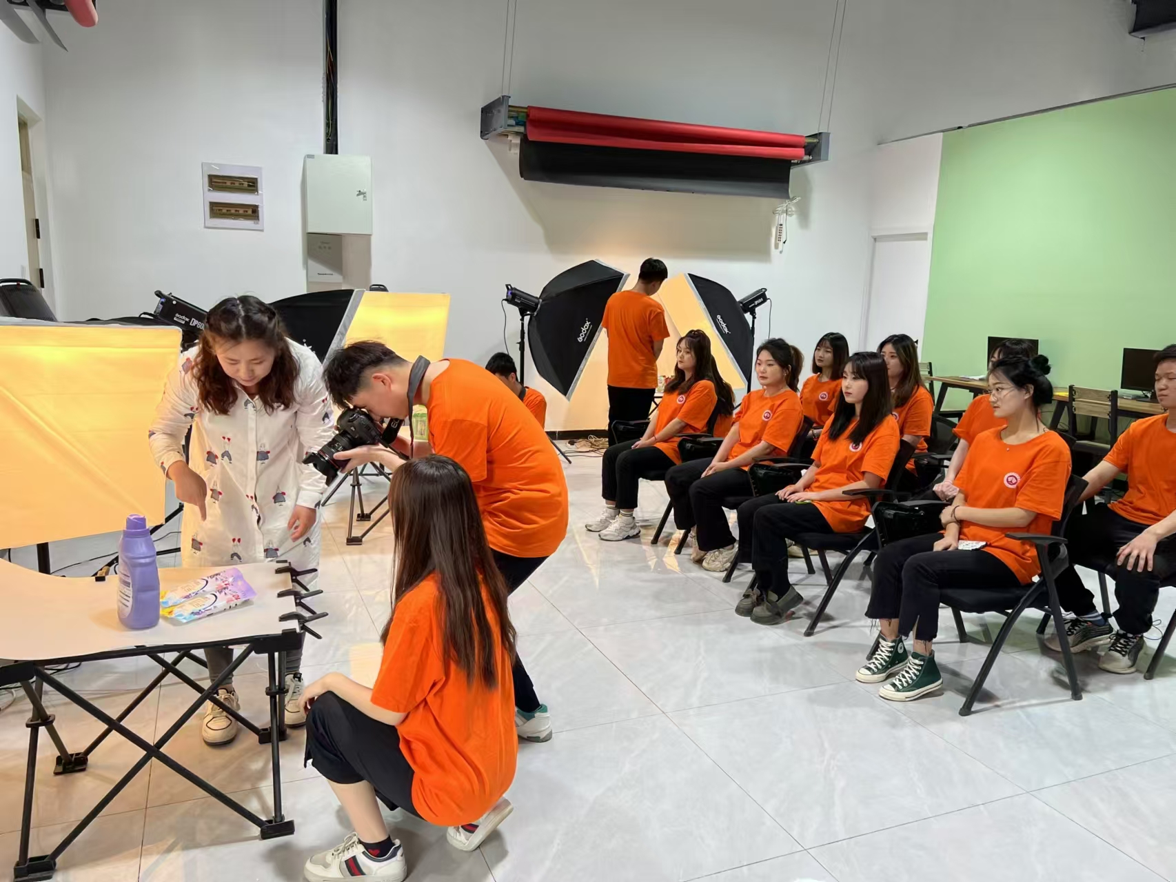 在校内,团队建设了短视频制作和电商直播两大实训培养平台,8 个标准实训机房,能完成从拍摄、剪辑、运营到直播变现等的教学实操,为学生提供实践操作的机会。同时,课程还搭建了一套综合实训系统,将理论知识与实践操作相结合,通过一体化推进项目任务教学,整体提升学生的技能实训水平。