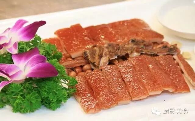 (2)色泽、风味:肉质细嫩,皮色黄亮,瘦肉红似玫瑰、脂白有光泽、气味鲜香、滋味浓郁。