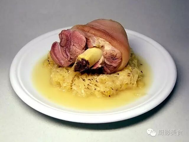 真正的德国老饕,猪手不可煮,只能烤,设置烤炉200°,猪手切几刀,涂上猪油,放入烤炉,烤至金黄。然后用丁香、肉桂、葛缕子掺草莓酱涂之,太干淋啤酒,一小时完成。取焗炉的汁,加黄芥末,拌酸菜,正宗!