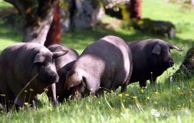 毫无疑问,每一只伊比利亚黑猪都是含着金汤匙出生的,一种生的伟大死的光荣的猪。伊比利亚黑猪至少有4个月的放山无笼走动时间,可以在山林中任意奔跑,食用野生牧草和橡树果,饮用山间无污染的清泉。