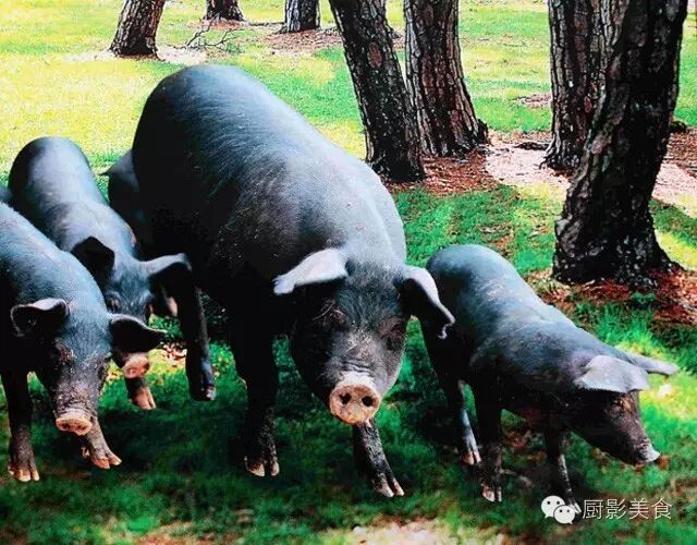伊比利亚黑猪体内的肌肉和脂肪之中储存着大量浓度的不饱和油酸,维生素B和抗氧化物质,因此被戏称为长了脚的橄榄,也被誉为“世界上最好吃的猪肉”。