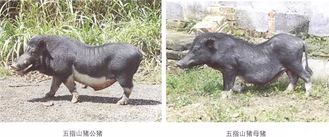 五指山人对本地原种猪称“五脚猪”,亦名香猪。我们常见的猪有四只脚,可是五指山区的猪为什么叫“五脚猪”呢?据说是这种猪的脚非常短小,个体不大,重量轻,养一年也只有百来斤,嘴尖且长,平时用嘴拱土觅食,嘴不离土,黎家人就认为它的嘴也是一只脚,故称““五脚猪””。