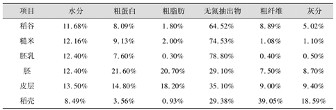 表1 稻谷子粒各组成部分的化学成分(以质量分数)