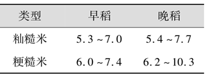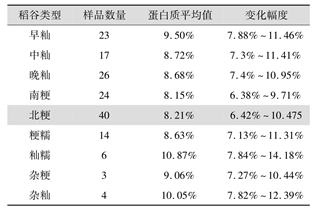 从表中不难看出,籼型稻谷的蛋白质质量分数略高于粳型稻谷,糯性稻谷蛋白质质量分数略高于非糯稻谷。
