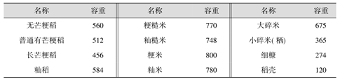 1)比重 比重是指稻谷质量与其同体积水的质量之比。不同类型的谷粒其比重不同,就是同一类型的谷粒,由于品种和生长条件不同,其比重也不完全相同。稻谷、糙米等物料的比重如下: