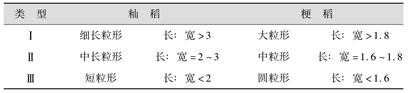 稻谷的粒形可根据长宽比例的不同而进行分类,如表3.14所示。