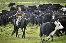 牦牛的放牧多数地区采用根据不同季节划分放牧草地,然后分群放牧的方式;少数地区实行围栏分群放牧。