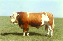 西门塔尔牛原产于瑞士阿尔卑斯山区,并不是纯种肉用牛,而是乳肉兼用品种。但由于西门塔尔牛产乳量高,产肉性能也并不比专门化肉牛品种差,役用性能也很好,是乳、肉、役兼用的大型品种。