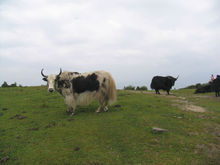 牦牛(学名:Bos mutus或Bos grunniens,英文名称:wild yak),属于哺乳纲、真兽亚纲、偶蹄目、反刍亚目、牛科、牛亚科动物,是以中国青藏高原为中心,及其毗邻高山、亚高山高寒地区的特有珍稀牛种之一,草食性反刍家畜。牦牛能适应高寒气候,是世界上生活在海拔最高处的(除人类外)哺乳动物,分布于中国青藏高原海拔3000米以上地区。牦牛的藏语叫雅客,世界通称为“yak”,即藏语译音。牦牛叫声像猪鸣,所以又称猪声牛。西方国家因其主产于中国青藏高原藏族地区,也称西藏牛。牦牛尾如马尾,所以又名马尾牛。