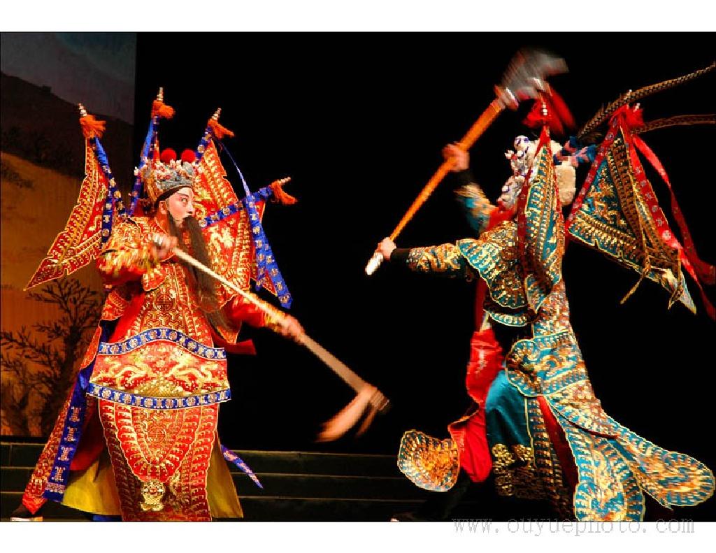 戏曲是中国传统艺术之一,剧种繁多有趣,表演形式载歌载舞,有说有唱,有文有武,集“唱、做、念、打”于一体,在世界戏剧史上独树一帜,其主要特点,以集古典戏曲艺术大成的京剧为例,一是男扮女(越剧中则常见为女扮男);二是划分生、旦、净、丑四大行当;三是有夸张性的化装艺术--脸谱;四是“行头”(即戏曲服装和道具)有基本固定的式样和规格;五是利用“程式”进行表演。中国民族戏曲,从先秦的""俳优""、汉代的“百戏”、唐代的“参军戏”、宋代的杂剧、南宋的南戏、元代的杂剧,直到清代地方戏曲空前繁荣和京剧的形成。