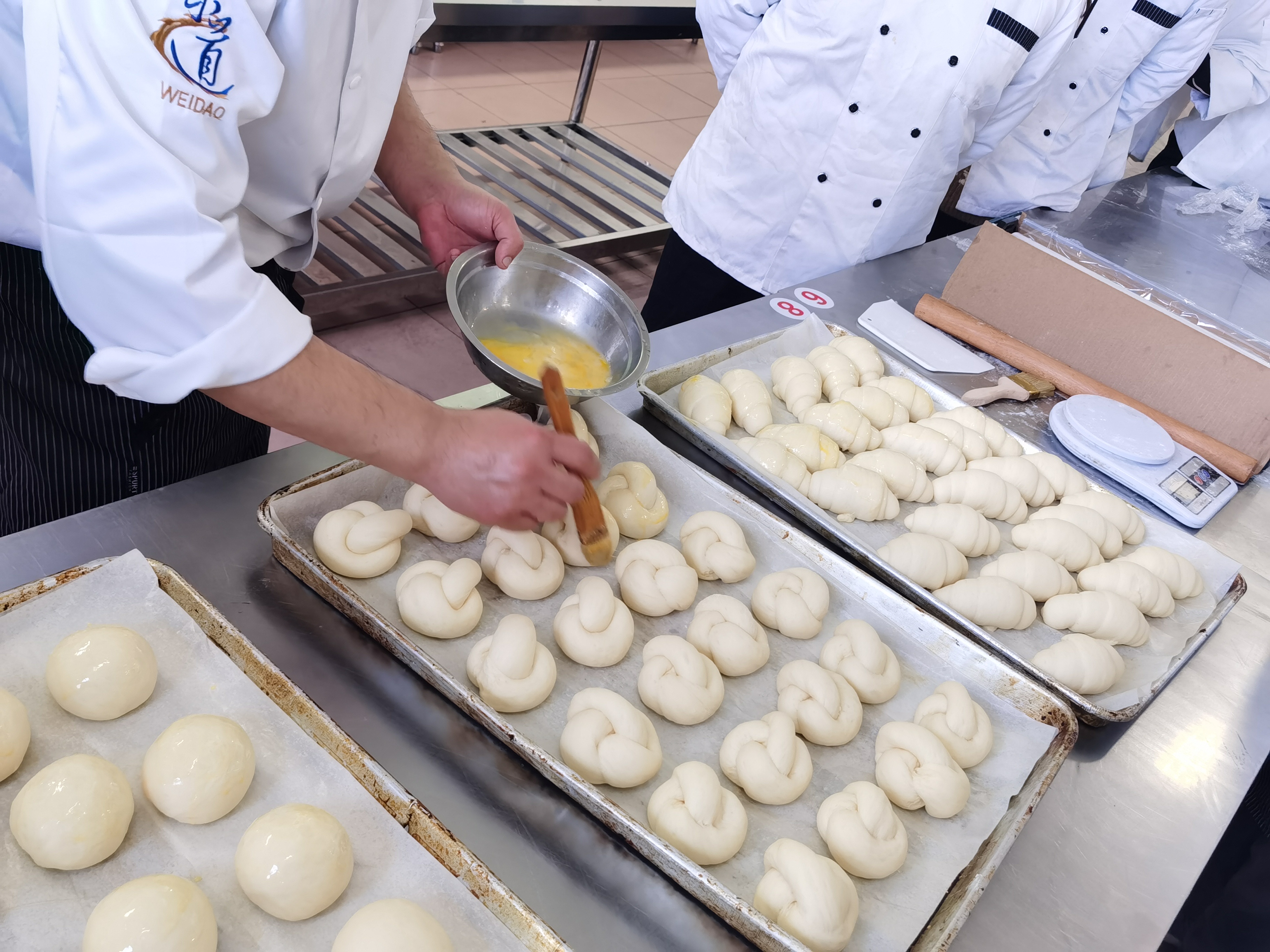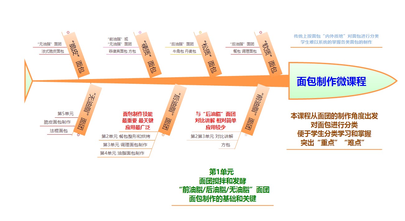 《面包制作》微课程是《面包制作工艺》课程的在线教学模块。共有五个单元组成:(一)面团搅拌和发酵、(二)餐包整形和烘烤、(三)调理面包制作、(四)油脂面包制作,(五)脆皮面包制作。这五个教学单元构成了简洁、系统、完整的面包制作工艺。方便学习者的任何时候、任何地点学习。每个单元主要讲述面包的制作知识、操作技能和工作态度三部分内容。《面包制作工艺》采取线上和线下混合式教学方式。线上五个单元共20个课时,线上:教师讲、教师做、教师示范、学生学习;线下共十三个单元共52个课时,线下:学生单独做、分组做、完成工作任务,教师指导、点评、分享。各单元教学内容选取典型品种,讲解它们的制作方法、制作流程,和应用场景,突出制作各类品种的“重点”和“难点”。线上课程的特色:(1)简洁明了、上手快。从面包制作角度对面包进行分类,面包品种大体上分为“多养养”、“少营养”二种的制作方法和质量标准。(2)工艺完整,易掌握。从面包的面团制作方法上来讲,面团分为“前油脂”、“后油脂”、“无油脂”三种的工艺。(3)工作态度,学冠军。细节决定成败,态度决定一切。“一切手工技艺,皆由口传心授。”从面包制作世界冠军的敬业精神、工作态度和精益追求上引导学生崇尚“劳模精神、劳动精神,工匠精神”的劳动者的品德。本课程教学团队成员积极开展教学改革和教学研究,深化人才培养模式、现代教育技术、评价考核方法、教学模式方法等方面改革。教学理念转变,教学目标更为明确,教学内容设计、组织更为合理。本微课程《面包制作》于2021.6被评为2021年校级微课与教学能力比赛“一等奖”