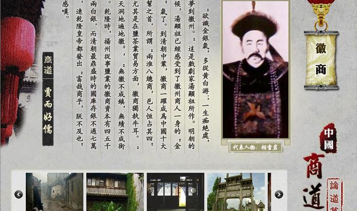 2)通过文字、图片、影像等材料的分析,探讨徽商环境、徽商人物与徽州文化历史之间的关系。