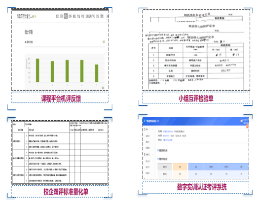 课程的教学评价方式上,也进行了改革和创新,采取校企双评、理实双考的评价体系创新。一是采取过程评价与终结性评价相结合的方式,增加了过程性评价的比例,通过线上机评、小组互评、校内教师测评、校外导师点评等,全过程考察学生的学习效果;二是在终结性评价环节,通过引入企业数字化能力认证考评系统,增加数字技能评价,实行理论与实践双评价的方式。在评价过程中,我们提供了线上自评习题库、过程评价评价表、认证考评系统试题库等,量化学生的评价,规范学生的评价标准。