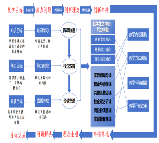 课程聚焦“精施工、擅识图、会造价、懂管理”的新时代造价人能力目标,以工作岗位能力需求为导向,课程团队围绕课程内容进行了“岗课赛证一体化”设计,通过市政工程计量与计价的三个工作过程分析对应的岗位能力要求,按照岗位能力要求设置三大模块的课程内容,根据三个知识模块的课程内容一一对应三项国家级教育部A类学科竞赛,以学科竞赛促进职业能力认证,通过职业认证考核达到可以胜任工作的闭环课程体系,增强人才培养的适应性。