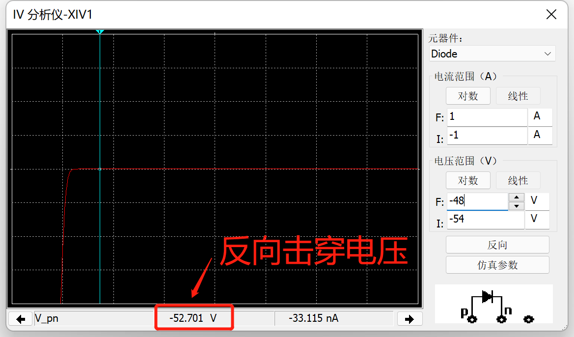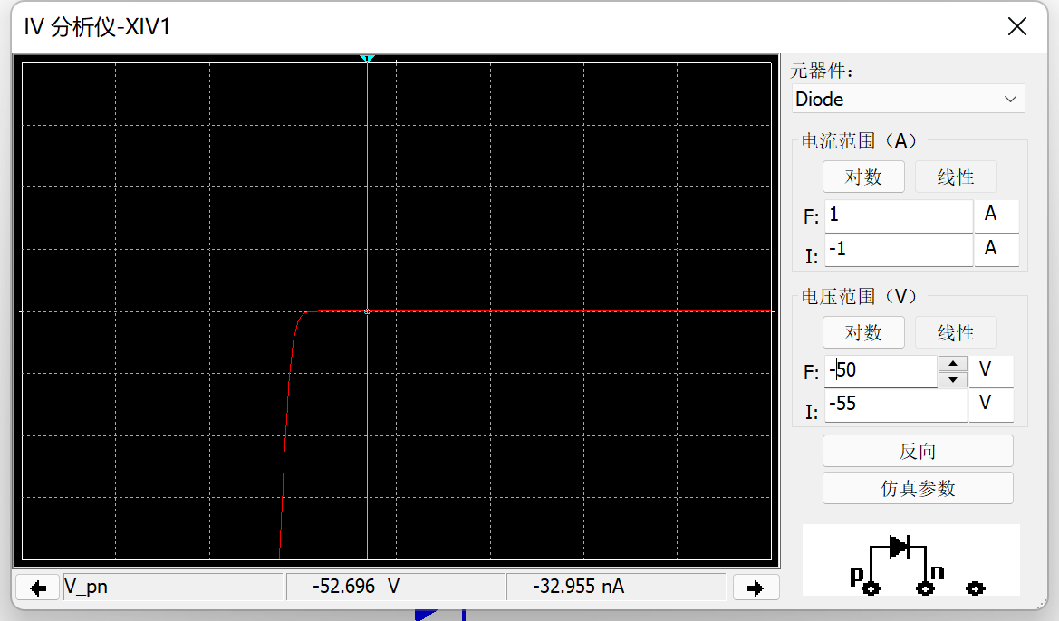 (3)观察1N4001二极管的反向击穿电压