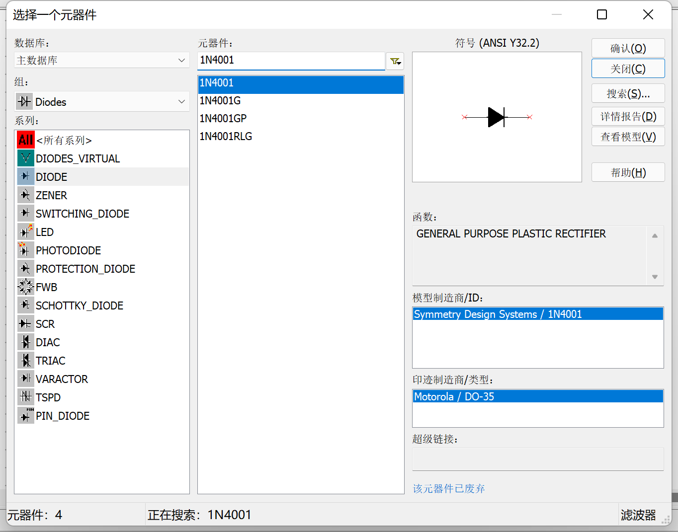 | 3.放置器件及仪表 | (1)查找并放置1N4001二极管