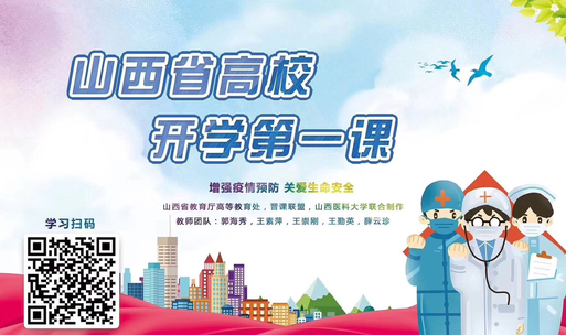 为做好我省广大高校师生疫情防控工作,省教育厅高等教育处、省高校精品共享课程联盟、山西医科大学联合制作了山西省高校《开学第一课》,通过新冠病毒解密、新冠肺炎预防、诊断、治疗和疫情心理调控,帮助广大高校师生认识疫情,了解疫情,做好疫情防护工作。