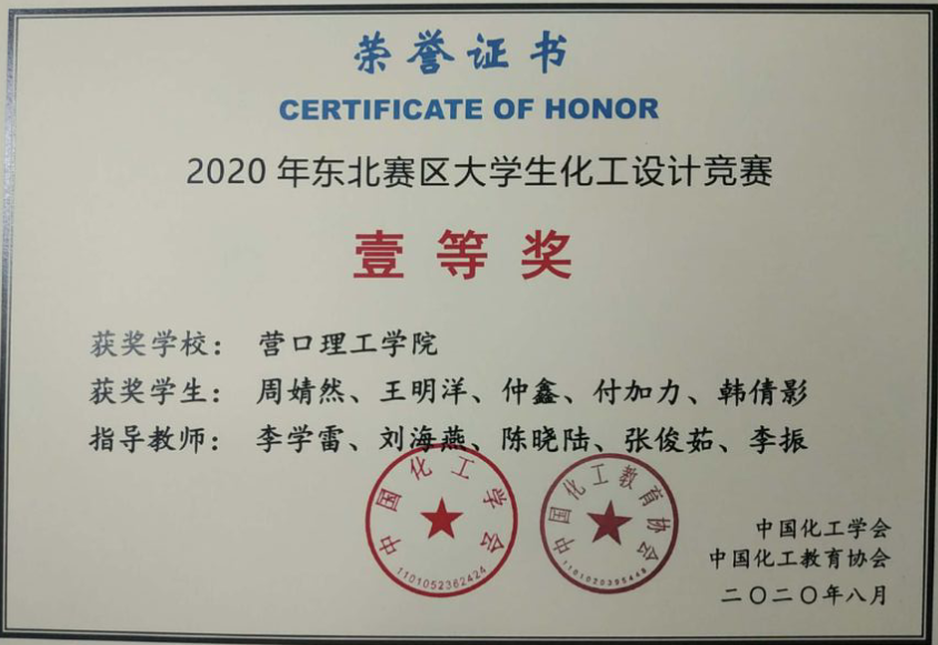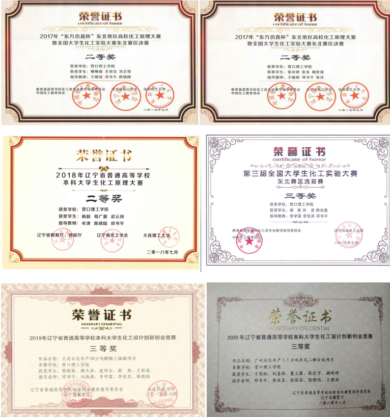 4.学生在辽宁省化工原理实验大赛和化工设计创新大赛中多次获奖。