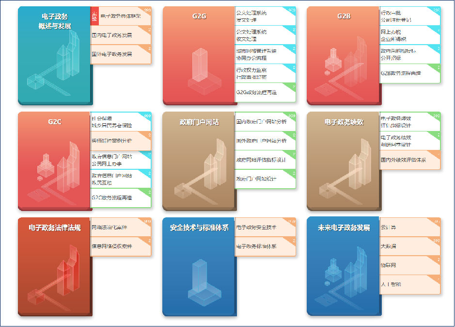 课程主要强调理论、软件与实践相结合,运用模拟演示、任务驱动、互动式情景等教学方法,为学生提供电子政务中公文流转、行政审批、企业办税、政府采购、社会保障、网上办事、政民互动、舆情监控、政务网站评估、网上调研等业务流程“电子”环节的内容,并通过学生仔细观察,积极思维,自主决策,使学生对电子政务系统中各个环节出现的与运作过程、安全技术、网站运行、标准体系、绩效和法律法规等方面的问题有更加直观的理解和认识,学生能更加直接,鲜明、生动、真实的体验管理决策过程,能更清晰的认识真实的网络环境下的政务系统,从而加深学生对电子政务理论的理解,熟悉电子政务过程中涉及的相关政务操作,培养学生管理决策的思维,加强学生独立管理决策的能力和实践操作水平。| 课程章节 | | 文件类型 | | 修改时间 | | 大小 | | 备注 | |