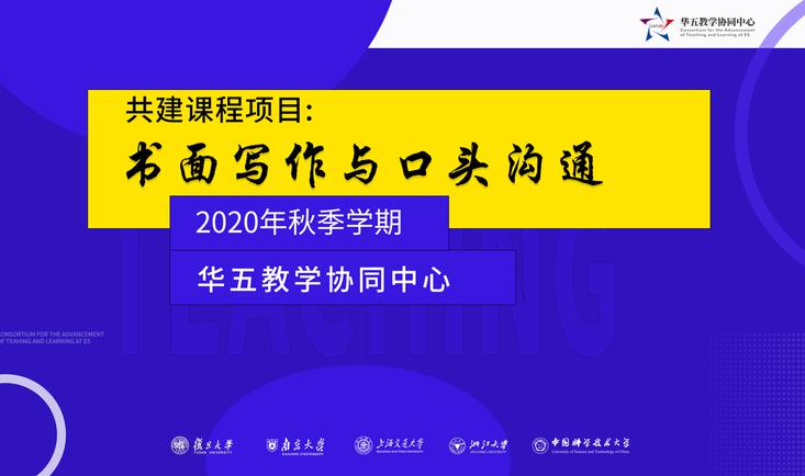 本课程属于华五教学协同中心共建课程项目;共建课程项目旨在充分调动和积极利用“华五”高校的优秀师资力量,发挥各校优势,积极打造满足广大学生需求的特色课程。“书面写作与口头沟通”共建课由南京大学牵头,自2019年底启动筹备工作,并于2020年秋季学期面向复旦大学、南京大学、上海交通大学、浙江大学和中国科学技术大学五校本科生正式推出。课程旨在帮助学生掌握书面写作与口头沟通的方式及方法,初步掌握主要的研究方法和解决研究、写作中有关问题的方法,提高自身的交流沟通能力和书面写作能力。来自五校的优秀教师通力合作,以校际直播课的形式,介绍各种应用文和学术论文的写作方法及格式, 讲述学术研究、学术规范的基本概念,以及科学研究的基本知识。讲解科技与专业写作以及英文写作的方法,并以面试和演讲为切入点,介绍沟通的特点和技巧。