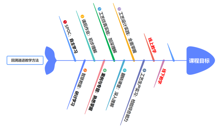 将线上线下混合式教学活动合理安排到课前、课堂和课后,采用自学、讲授、研讨、案例、翻转课堂、工艺仿真和工艺设计等教学方式,对知识进行回溯递进教学,实现从了解、熟悉,到深刻理解、掌握与应用的课程目标。