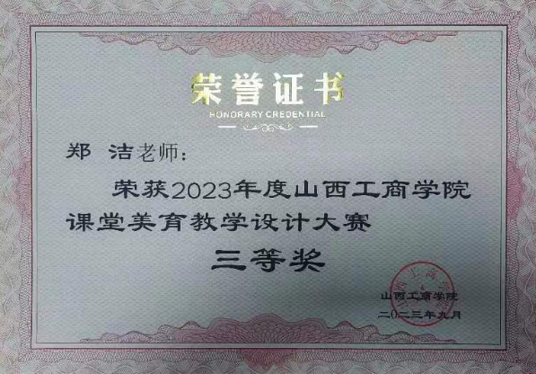 (2)荣获2023年度山西工商学院课堂美育教学设计大赛三等奖;