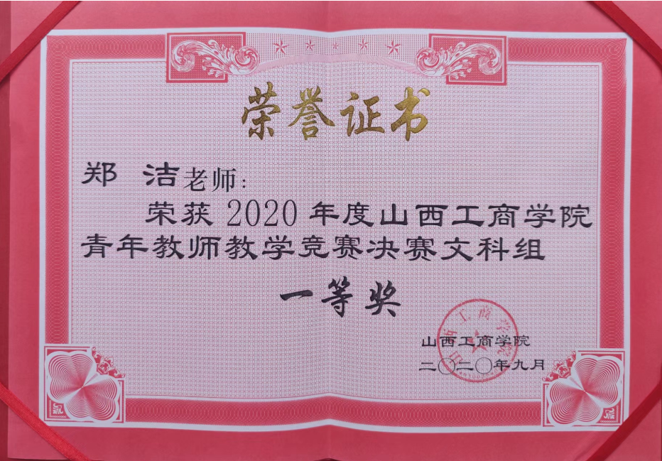(8)荣获2020年度山西工商学院青年教师教学竞赛决赛文科组一等奖.