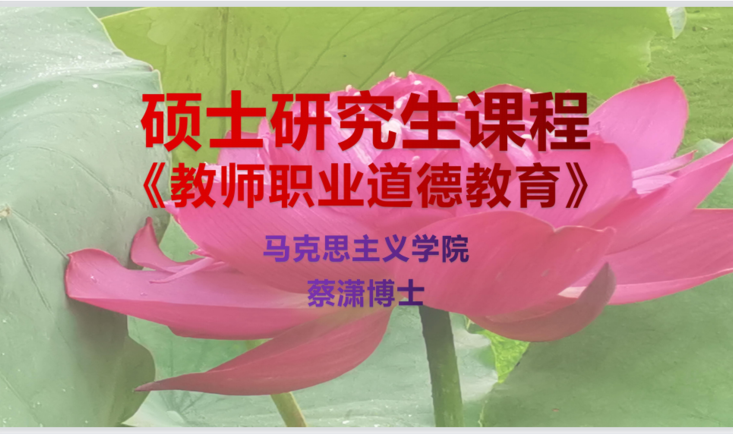 本课程作为教育硕士学位研究生的思想品德课程之一,是以马克思列宁主义、毛泽东思想和中国特色社会主义理论体系为指导,贯彻习近平新时代中国特色社会主义思想,根据新时代党和国家教育方针和教育发展的要求,从社会主义市场经济条件下对教师职业道德建设的要求和教育硕士研究生的思想实际出发,对教育硕士研究生进行马克思主义、社会主义、新时代中国特色社会主义教师职业道德教育的一门综合类研究生课程。