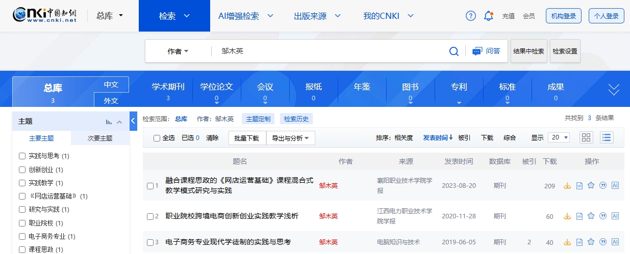 撰写的论文“融合课程思政的《网店运营基础》课程混合式教学模式研究与实践”、“职业院校跨境电商创新创业实践教学浅析”等多篇教育教学论文公开发表于CN刊物。