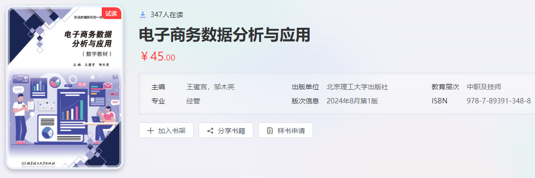 15.主编数字教材《电子商务数据分析与应用》(2024),北京理工大学出版社