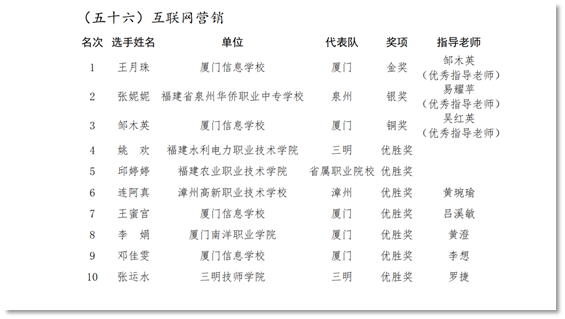 9.在福建省第一届职业技能大赛互联网营销赛项中获得优胜奖(第七名)