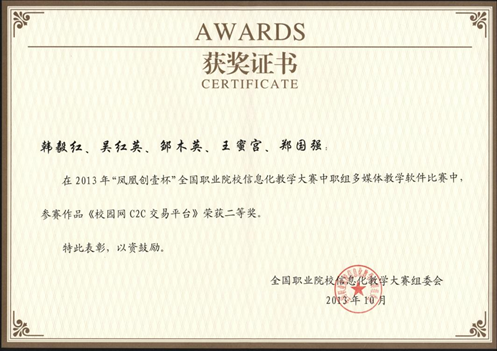 2013年参加全国信息化教学大赛获二等奖;