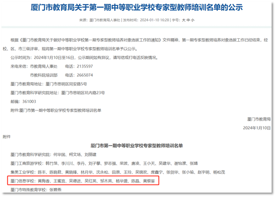 4.厦门市中职专家型教师培养对象