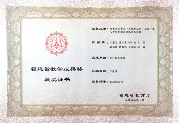2022年主持福建省教学成果奖获二等奖;