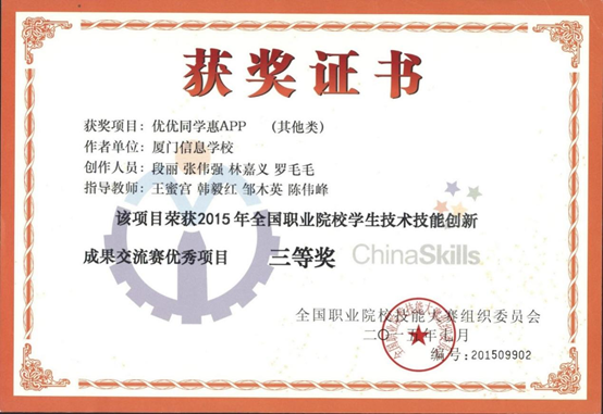 2020年厦门市中等职业学校技能大赛教学能力比赛中获市二等奖,省三等奖。