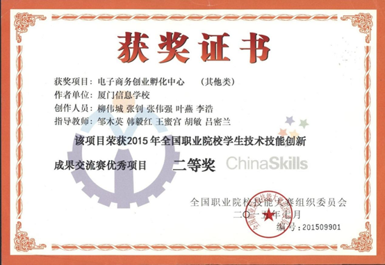 2015年指导学生参加全国职业院校技术技能创新成果交流赛获二等奖;