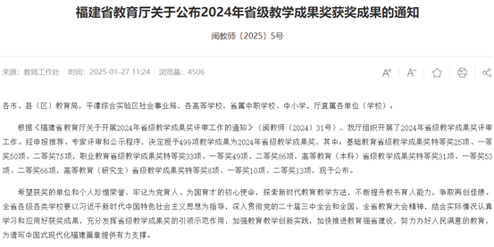 1. 2024年获福建省教学成果奖特等奖