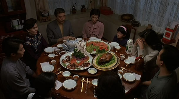 旧有的大团圆的传统家庭瓦解了,新的小家庭却并没有失去这一一个大家庭应有的爱与亲情,父慈子孝,和和睦睦的精神反而又过去尴尬的形式变成了事实。佳倩这样一个典型的现代女性,不仅能有成功事业,最终也成为了出色的贤妻良母,这就是传统在现代的新生和延续,这是导演李安的中庸式的平衡之美。最后一场餐里,虽然形式上不完整了,大女儿和三女儿都不在,但是精神上却完整了——相比之前形式完整的一家人却隔阂深重形成了一个有意思的对比。形式的毁灭和实质的重生为这个系列划上了温馨的句号。