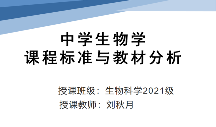 《中学生物学课程标准与教材分析》是生物科学专业教师教育类必修课程。本课程深入解读我国中学生物学课程标准,研究中学生物学教材分析规律和方法,体现当前基础教育课程理念,加深师范生对国家制定的生物学课程标准的理解,深层理解中学生物学教材特点,掌握生物学教材分析的原理和方法,为提高师范生教材分析能力、教学设计能力和教学实施能力奠定基础。