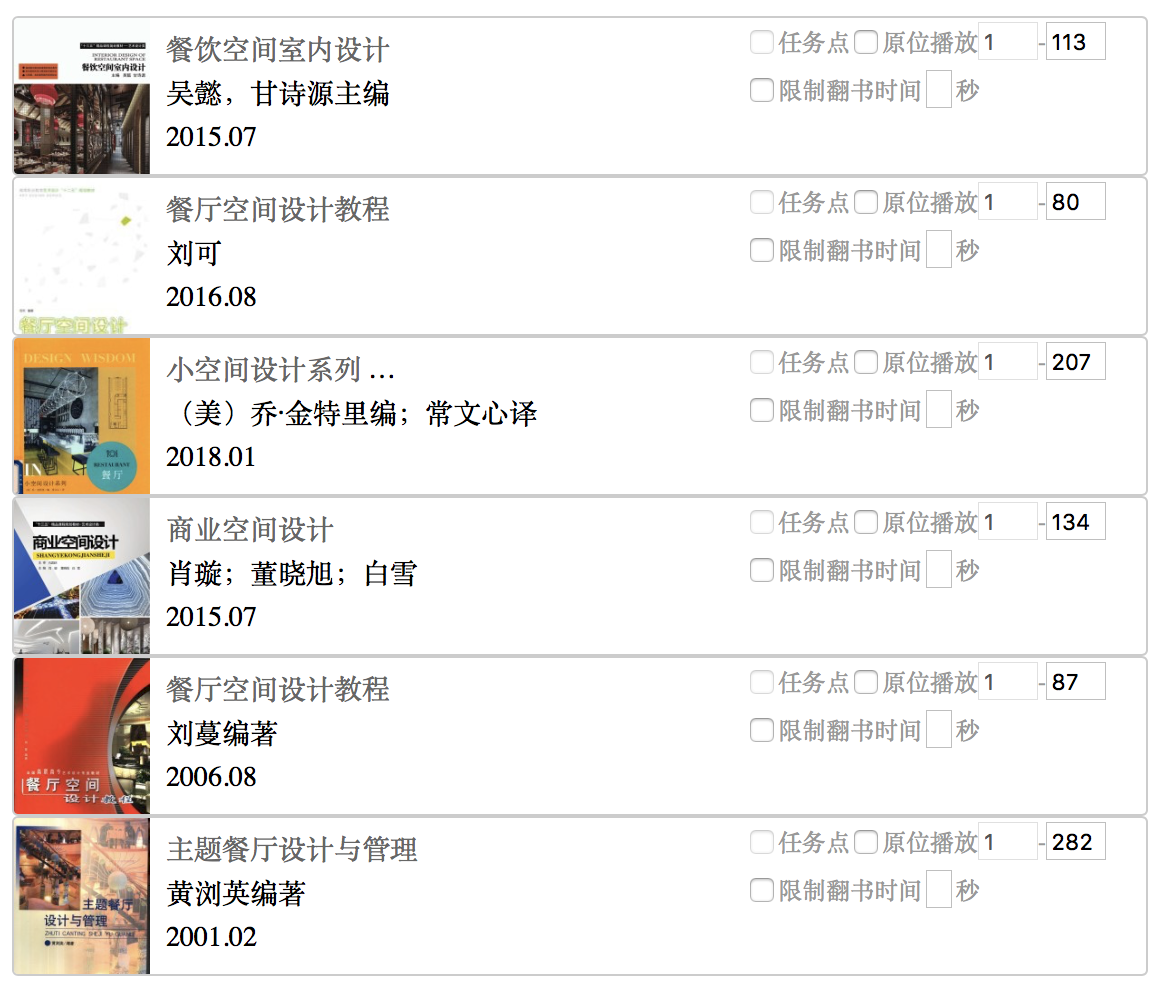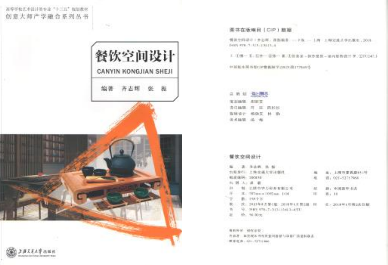 《餐饮空间设计》ISBN 978-7-313-13413-4/TU,齐志辉、张振,上海交通大学出版社,2018 年 1 月第 2 版