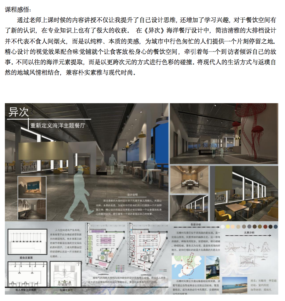 每位同学都通过自己的学习让自己对于餐饮空间设计有了新的认知和理解,也许未来的道路之中充满了太多了未知性,但是我相信同学们一定能从这堂生动形象的专业课学习到“实践才是检验真理的唯一标准”。
