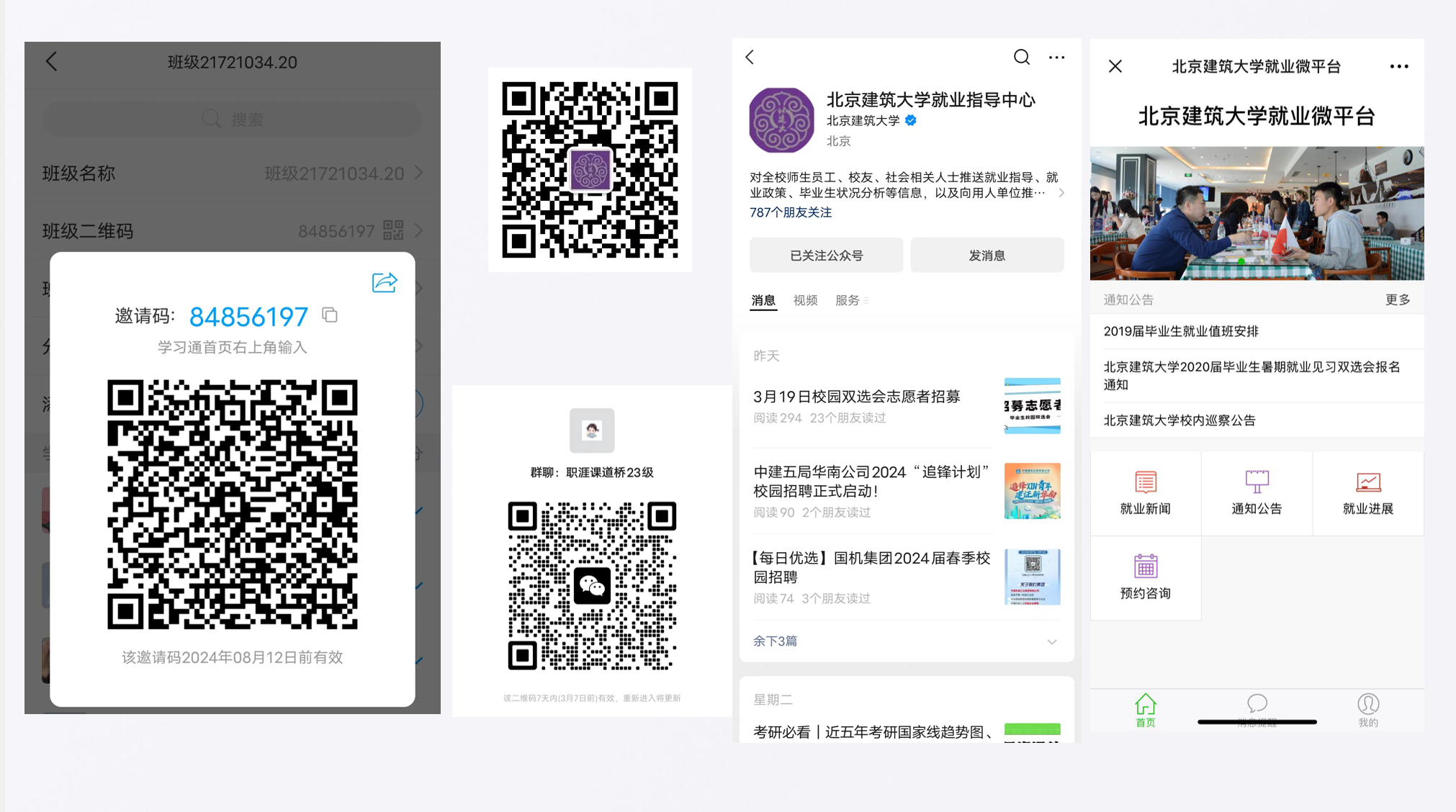 各位同学可以通过课程微信群和超星学习通随时进行交流和答疑,大家有需求也可以从学校就业指导中心公众号上预约咨询。