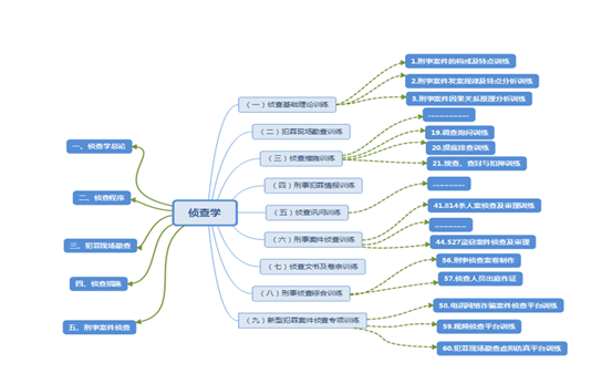 侦查学课程设置3个学分,48个学时。理论学时24学时,实训学时24学时,线上教学16学时,线下32学时。侦查学课程面向治安学、刑事科学技术、网络安全与执法、警务指挥与战术、涉外警务等公安本科专业,是一门全校性的专业基础课。