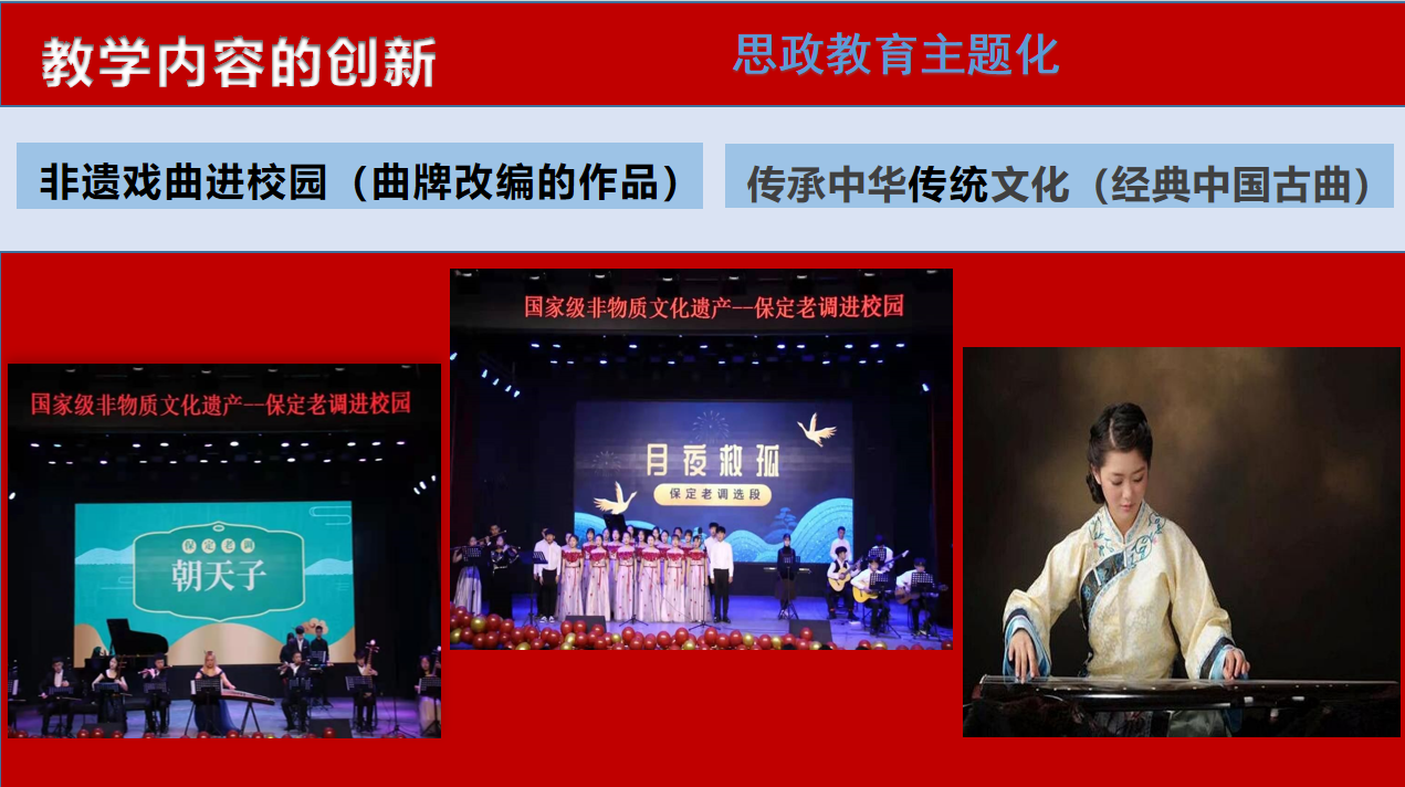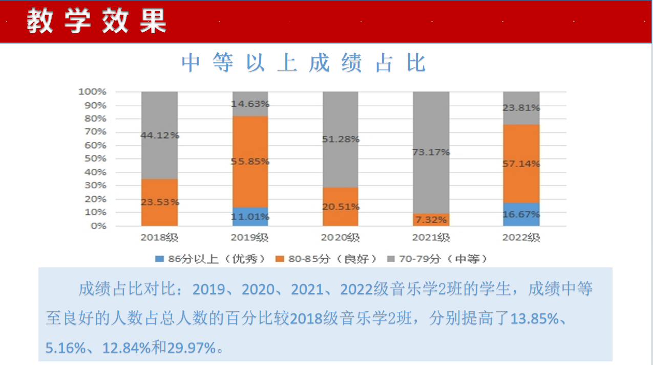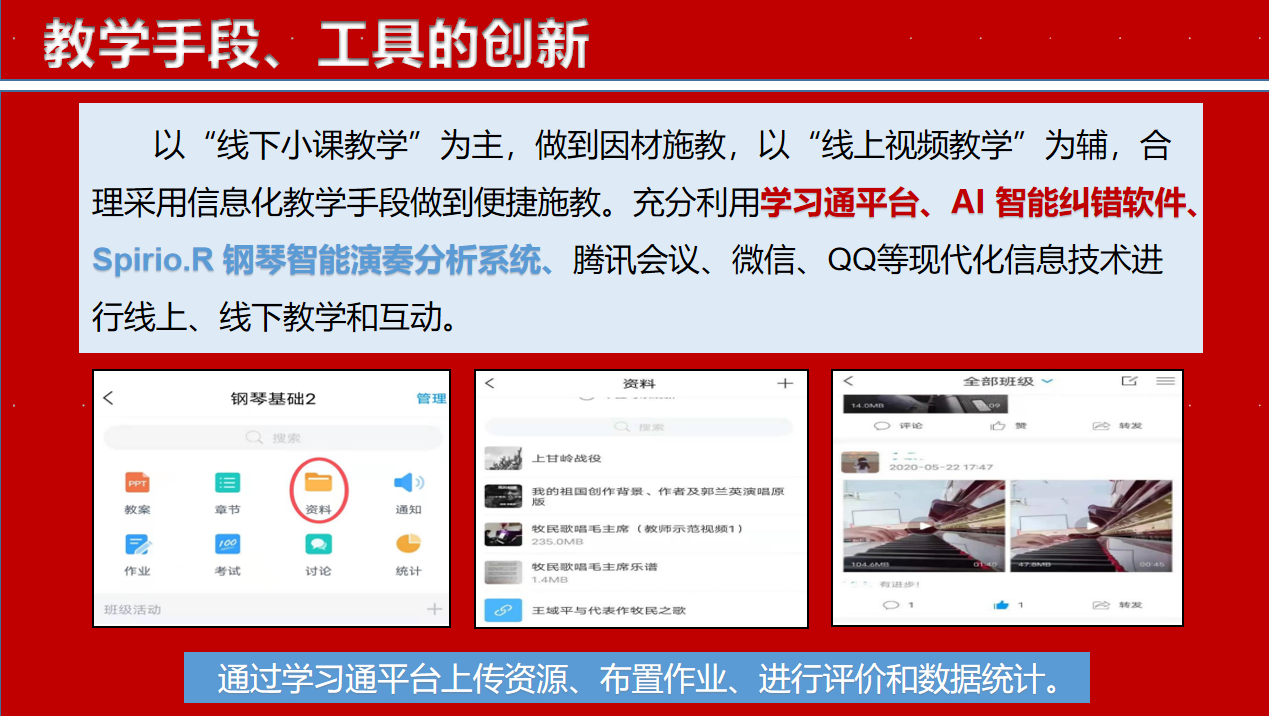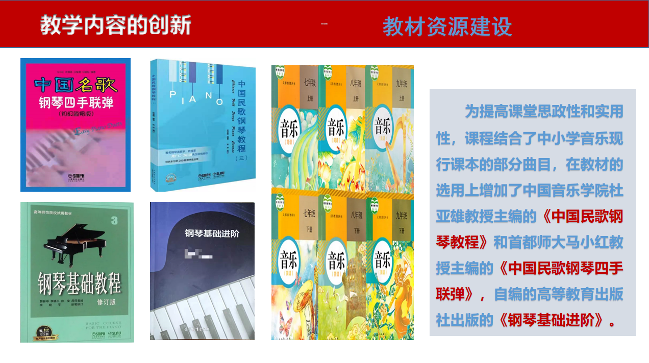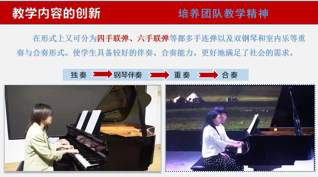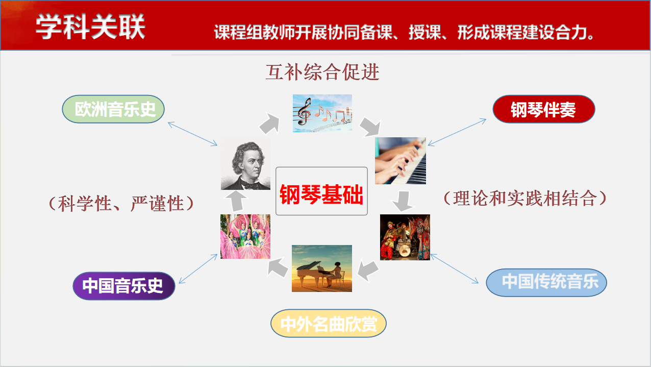 河北省线下一流课程《钢琴基础》是一门理论与实践相结合,对业务技术和实践技能要求较高的应用型课程。自1998年9月起,一直作为我校音乐学院音乐学、音乐教育、舞蹈学等本科专业的专业核心课程连续开设。授课内容涵盖了铌琴弹奏的基础知识、基本方法、演奏技巧及相关的中外钢琴作品理论知识。在制定面向“师范专业认证”的教学大纲的过程中,把握音乐教育在“立德树人”工作中的基础性地位,树立辨证唯物历史观,坚定新时代师范专业人才培养任务,挖掘各个历史阶段相关音乐作品和思政教育的契合点,促进音乐师范生形成新时代中国特色社会主义教育思想。