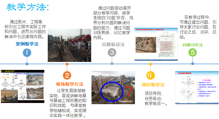 地基与基础工程课程采用“一图两册一库”教学法,教法五元素为: