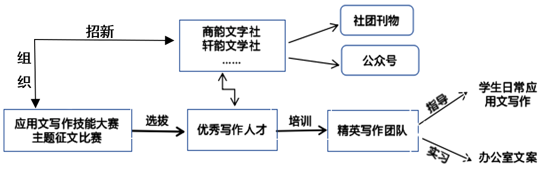 通过组织“商韵杯”大学生应用文征文比赛(每年举办一次)、“逆行·守望”主题征文比赛、“庆祝建党百年,弘扬知青精神”征稿活动、“写给祖国的三行情书”征稿活动等,为学生搭建写作实践平台,同时在全校营造一种重视写作、崇尚写作的校园氛围。获奖学生进入“温商大学生写作人才群”,组建写作志愿者团队,增加学生获得感。见成果展示
