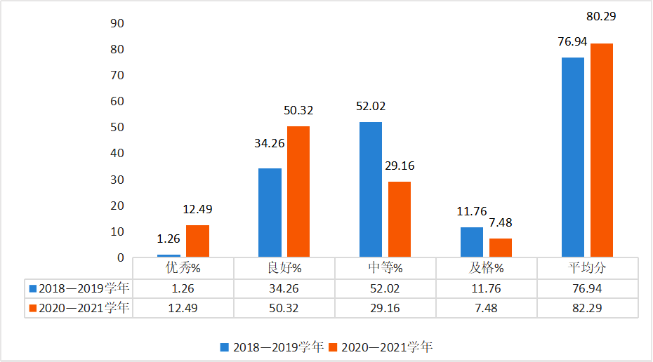 2018-2019学年应用文写作课程期末成绩平均分为76.94,实施教学改革之后,2020-2021学年期末成绩平均分为80.29,提高了3.35分,其中优秀率提高11.23%,良好率提高16.06%,可见学生的学习成绩较改革前是有较明显提升的。(本次数据采集自温州商学院教务系统应用文写作期末试卷分析报告)