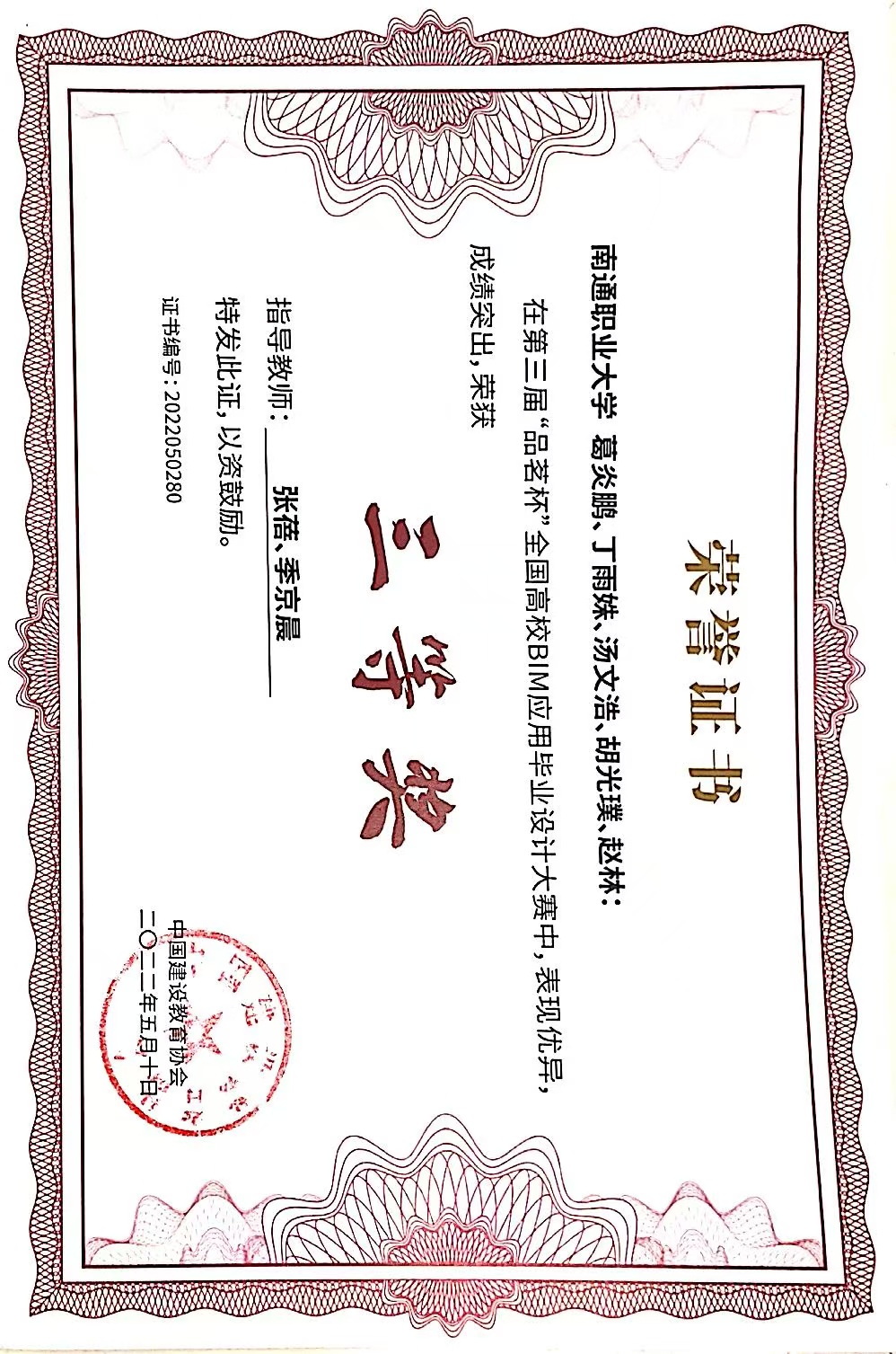 学生参加2024年世界职业院校技能大赛建筑信息模型建模与应用赛项获得铜奖