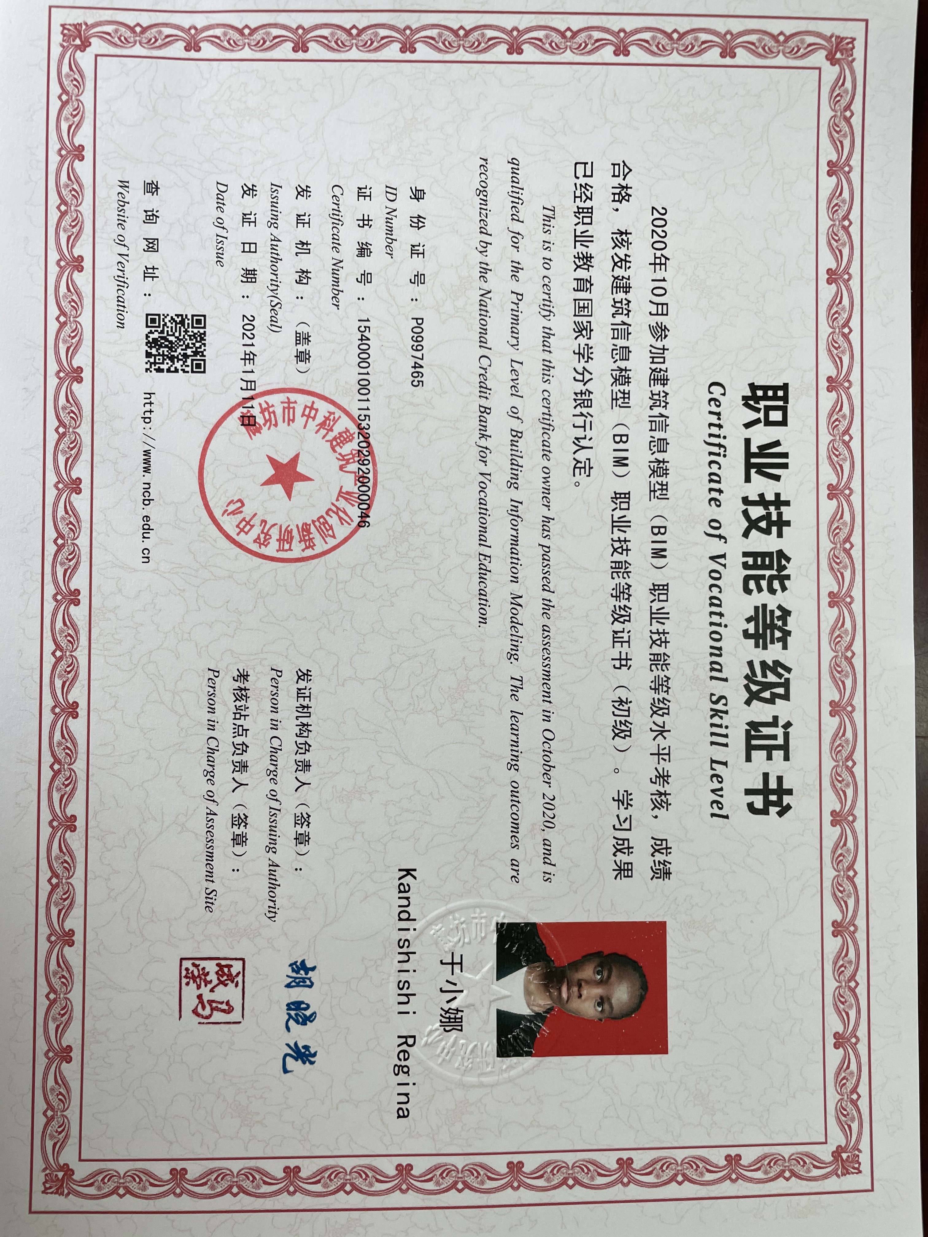 在校期间大部分学生获得“1+X”BIM技能证书的初级证书,部分同学获得1+X”BIM技能证书的中级证书