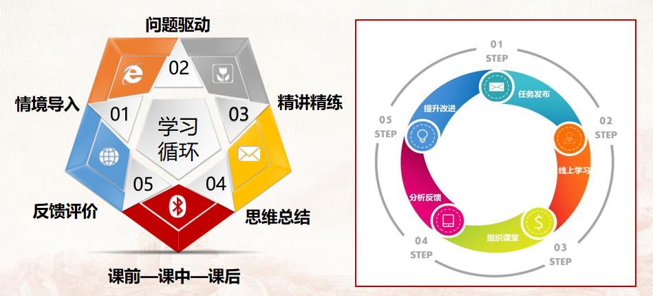 教学过程遵循“课前+课中+课后”学习反馈循环的基本规律。通过学习通平台发布学习资料,布置学习任务,并按照情境导入、问题驱动、精讲精练、思维导图总结、反馈评价等“五步教学法”开展在线学习。课后注重拓展案例、补充资料的优化学习,以及紧贴学习、工作、生活实际的线下实践教学任务的组织与评价。